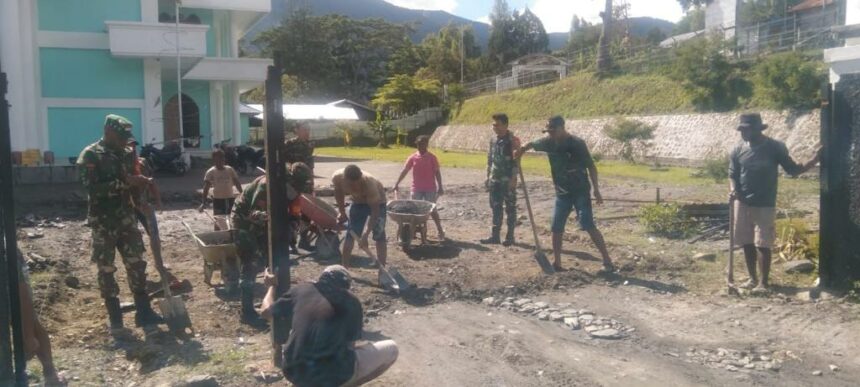 TIFFANEWS.CO.ID,- Koramil 1702-08/Karubaga gelar karya bakti bersama dengan Pos Pi Jemaat Filipus Karubaga, di Jl. Ampera Distrik Karubaga, Kabupaten Tolikara, Provinsi Papua Pegunungan, Kamis, (27/04)
