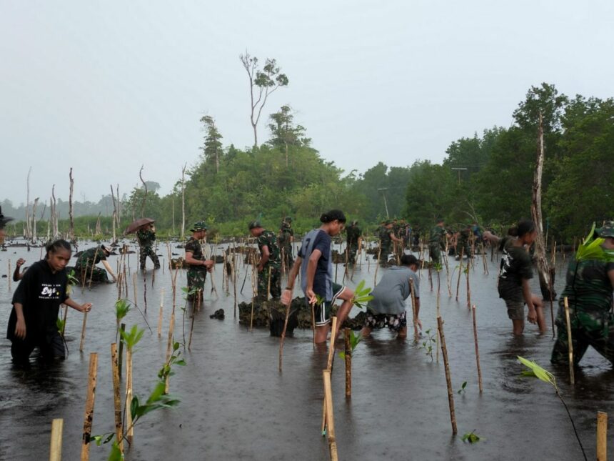 Penanaman mangrove ini melibatkan Kodim 1708/BN, Lanal Biak dan Lanud Manuhua Biak dan Masyarakat Kampung Tanjung Barari.