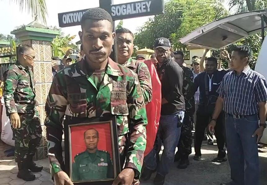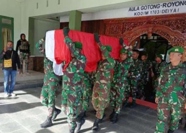 TIFFANEWS.CO.ID,- Aparat gabungan TNI-POLRI dipimpin Komandan Kodim 1703/Deiyai. Letkol Inf I Wayan Dedi Suryanto SE. dalam pelaksanaan evakuasi almarhum Letda Inf Oktovianus Sogalrey, korban Penembakan oleh OTK. di Kampung Pasir Putih. distrik Aradide. Kabupaten Paniai, Kamis, 11 April 2024. sampai pengantaran ke rumah duka di jln. Auri Kampung Girimulyo. Kabupaten Nabire, Provinsi Papua Tengah, Jum’at, (12/04/2024).