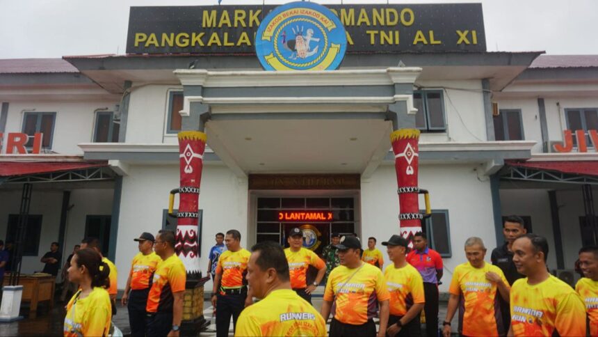 Danlantamal XI, Laksamana Pertama TNI Joko Andriyanto, S.T., M.Tr.Hanla., M.A.P.memimpin kegiatan Olahraga bersama dan Fun Run yang kali ini diawali dengan pengecekan tensi peserta Fun Run dan dilanjutkan dengan melepas peserta Fun Run.