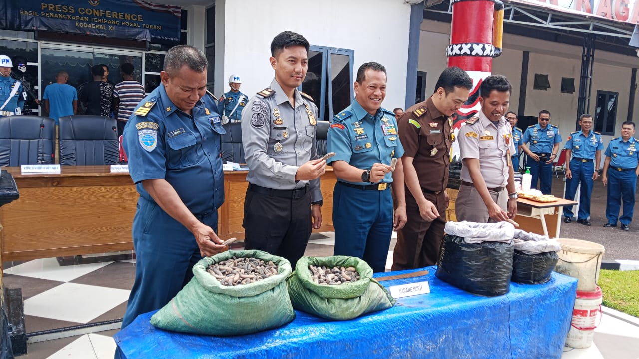 Menindaklanjuti informasi tersebut, tim POSAL Torasi melaksanakan patroli di perairan Torasi. Hasilnya, mereka menemukan 10 karung plastik berwarna hitam berisi teripang seberat 290 kg tanpa pemilik yang langsung diamankan.