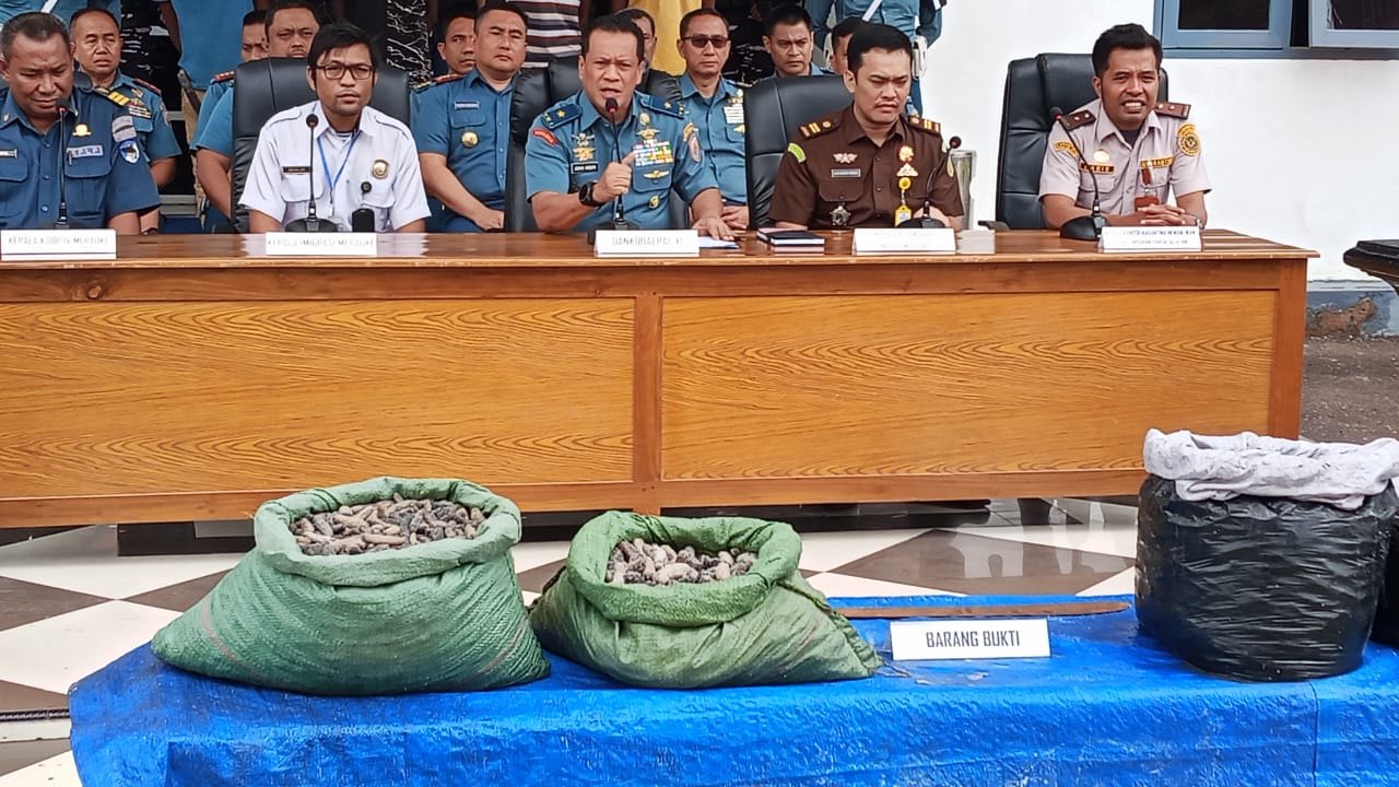 Dari hasil pemeriksaan, ditemukan 13 karung berisi teripang dengan total berat 281 kg. Dengan demikian, total barang bukti yang diamankan mencapai 571 kg teripang.