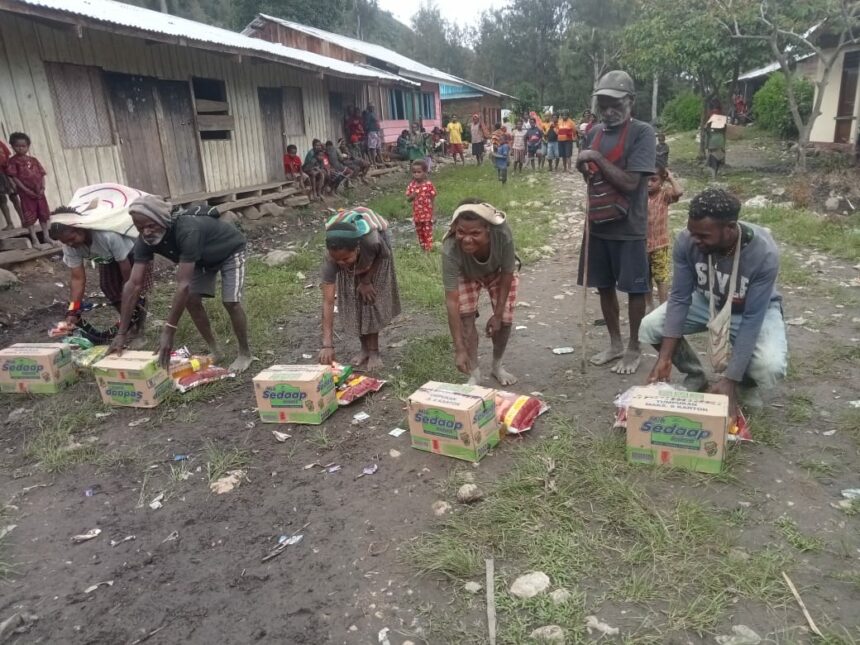 TIFFANEWS.CO.ID,- Pemerintah Kabupaten (Pemkab) Intan Jaya melalui Dinas Sosial Kabupaten Intan Jaya telah menyalurkan bantuan sembilan bahan pokok (Sembako) bagi masyarakat yang menjadi korban longsor di Kampung Janogo, Desa Degesiga, Distrik Homeyo, Kabupaten Intan Jaya, Papua Tengah.
