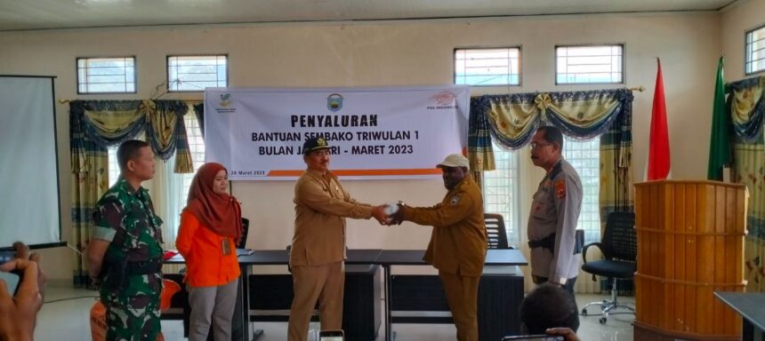Penyaluran bantuan Sembako dari Dinas Sosial tersebut ditandai dengan penyerahan dana bantuan Sembako dari pihak Kantor Pos Nabire kepada pemerintah kabupaten Intan Jaya untuk disalurkan kepada masyarakat penerima manfaat.