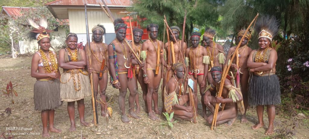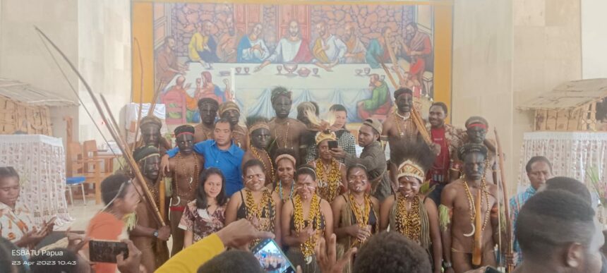 TIFFANEWS.CO.ID,- Siswa – Siswi SMP YPPK Bilogai dan Bilai membawakan koor bernuansa budaya pada Perayaan Misa Minggu Paskah ke – III di Gereja St Micahel Biologi, Intan Jaya, Minggu, (23/04/2023).
