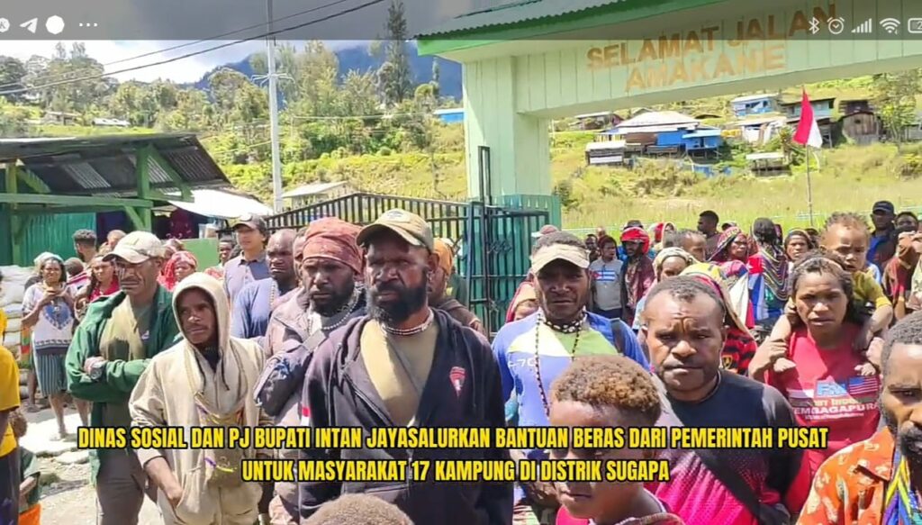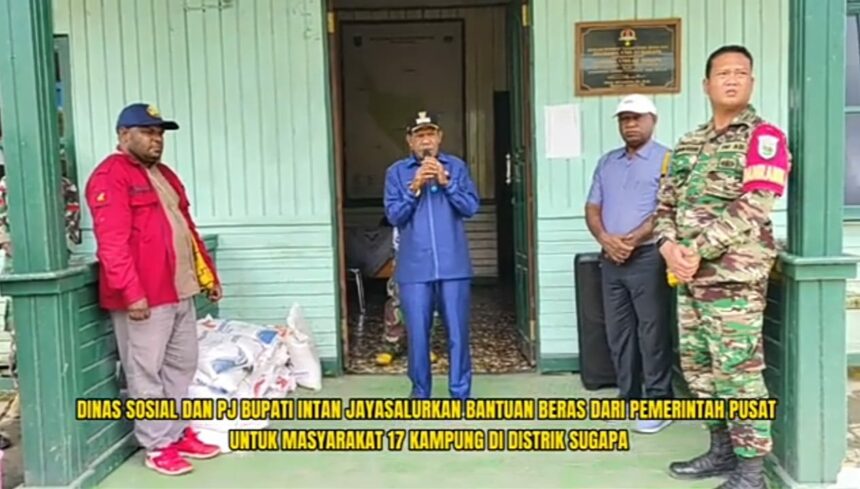 TIFFANEWS.CO.ID,- Pj Bupati Intan Jaya Apolos Bagau, ST., secara langsung menyerahkan bantuan beras dari Kementerian Sosial RI untuk masyarakat 17 kampung di Distrik Sugapa, Kabupaten Intan Jaya, Jumat (6/10).