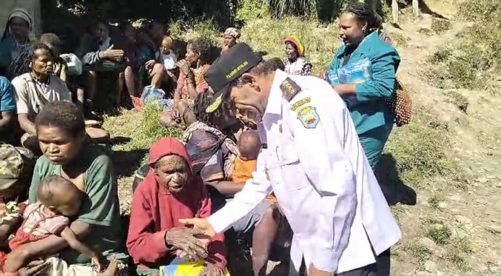 TIFFANEWS.CO.ID,- Pj Bupati Intan Jaya Apolos Bagau, ST turun langsung mendampingi TP PKK Intan Jaya membagikan bantuan makanan tambahan gizi untuk ibu hamil (Bumil), bayi dan anak-anak balita di Kampung Kumpalupa, Distrik Sugapa, Kabupaten Intan Jaya, Rabu (15/11).