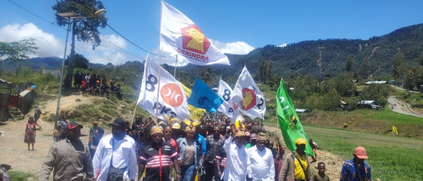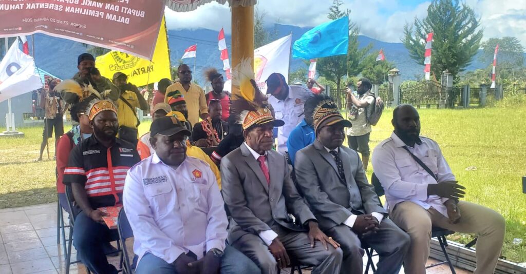 TIFFANEWS.CO.ID – Tim Kemenangan Transformasi Intan Jaya Maju, yang mendukung pasangan calon bupati dan calon wakil bupati Intan Jaya periode 2024-2029, Apolos Bagau, ST dan Tetairus Widigipa,S.Sos, bersama masyarakat pendukung, hari ini Kamis,(29/08/2024) pukul 12:30 WIT, mendaftarkan pasangan nya di kantor Komisi Pemilihan Umum (KPU) Jl. Poros Mamba,Kampung Mamba, Distrik Sugapa,Kabupaten Intan Jaya,Provinsi Papua Tengah.