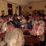 Semua yang hadir ikut dengan antusias dalam susana keheningan. Keunikan dari jalan salib ini adalah diperarakan sesuai dengan budaya umat setempat.