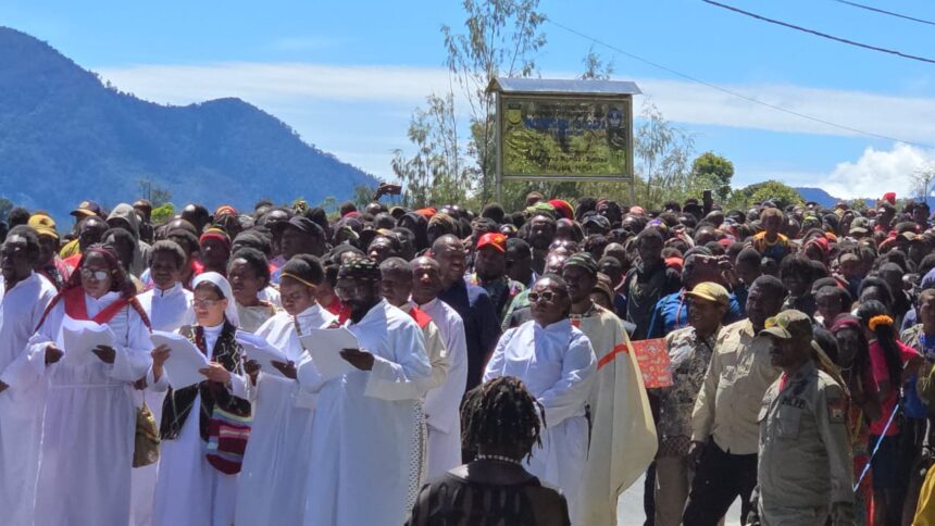 TIFFANEWS.CO.ID – Mengenang kisah sengsara Tuhan Yesus Kristus, Umat Paroki St.Michael Bilogai, melangsungkan Tablo Jalan Salib hidup pada Perayaan Jumat Agung di Sugapa pusat ibu kota Kabupaten Intan Jaya, Jumat. [18/04/2025]
