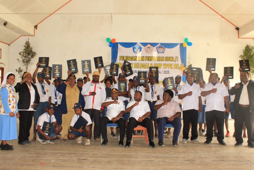 TIFFANEWS.CO.ID,- Acara pelepasan dan perpisahan siswa SMP YPPK St. Fransiskus Asisi Bilogai dan SMP YPPK Bilai dengan tema “Kejarlah Mimpi dan Cita-Cita hingga Puncak Gunung Cartenz dengan Iringan Doa dan Harapan” sukses digelar di Aula Paroki Bilogai, Rabu (7/5/2025).
