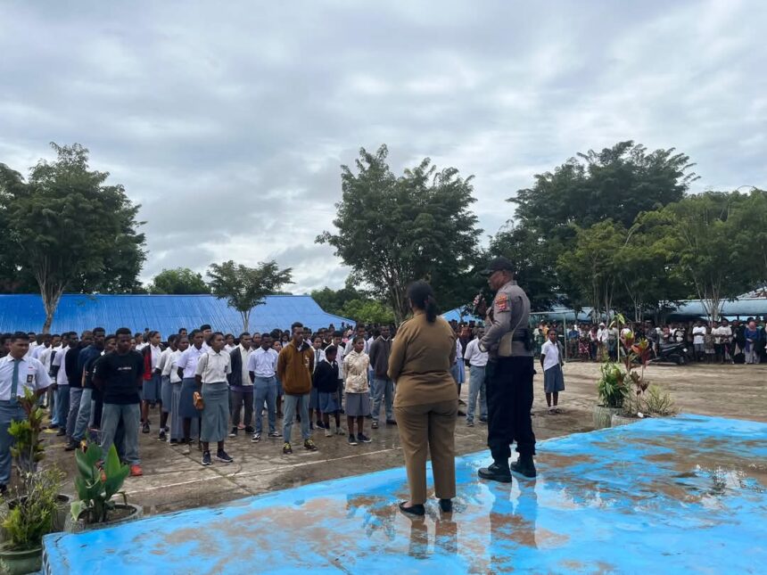 AKP Isak Rumboy selaku Perwira Pengendali Pengamanan memberikan pengarahan kepada siswa. (Foto: tiffanews.co.id/istimewa)