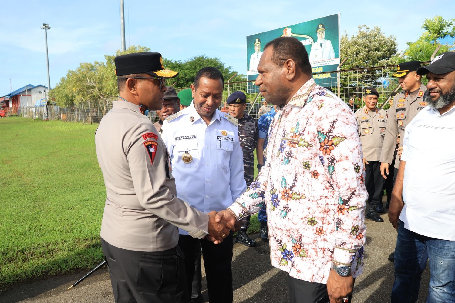 TIFFANEWS.CO.ID – Gubernur Papua Selatan, Apolo Safanpo, bersama Bupati Merauke, Yoseph B. Gebze, menyambut kedatangan Kepala Kepolisian Daerah (Kapolda) Papua, Irjen Pol. Petrus Patrige Rudolf Renwarin, beserta rombongan di Bandara Mopah, Merauke, Kamis pagi (5/6/2025) sekitar pukul 08.30 WIT.