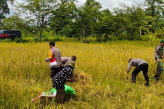 Kodim Yahukimo Panen Padi Bersama Masyarakat Dekei