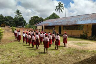 Babinsa Beri Materi Baris Berbaris di SD YPPK St Jhon Baptis Boven Digoel
