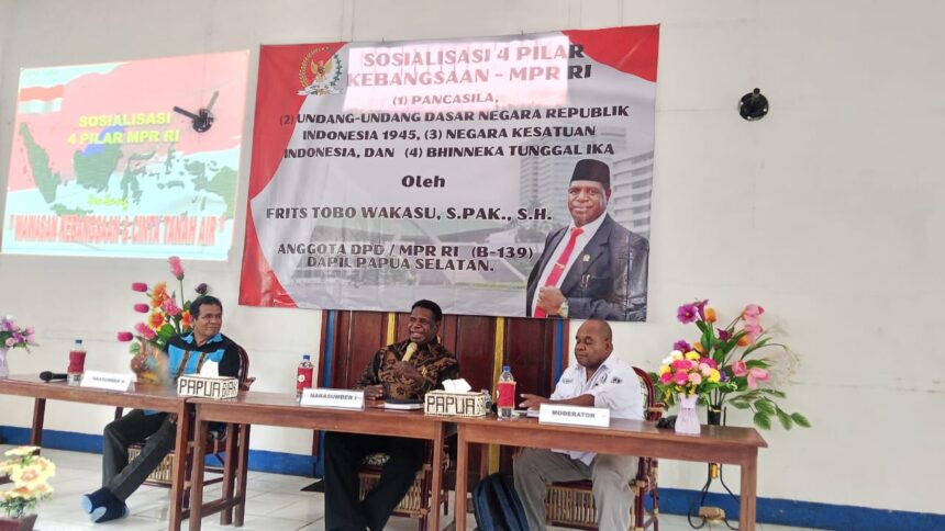 TIFFANEWS.CO.ID — Anggota DPD RI/MPR RI, Frits Tobo Wakasu, S.Pak., S.H., melaksanakan kegiatan Sosialisasi Empat Pilar Kebangsaan di Gereja GIDI Pison, Kabupaten Merauke, Senin (22/12/2025).