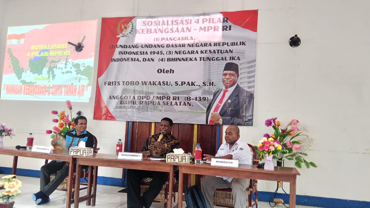 TIFFANEWS.CO.ID — Anggota DPD RI/MPR RI, Frits Tobo Wakasu, S.Pak., S.H., melaksanakan kegiatan Sosialisasi Empat Pilar Kebangsaan kepada pemuda/i Gereja GIDI Jemaat Pison, Jemaat Filadelfia, dan Jemaat Nazaret di Kabupaten Merauke, Kamis (11/12/2025).