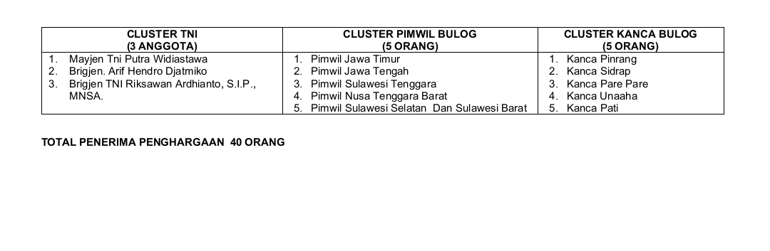 Menurutnya, penghargaan ini menjadi dorongan moral untuk terus menjaga kekompakan dan kesinambungan program pangan di daerah.