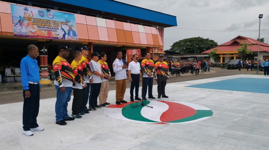 TIFFANEWS.CO.ID,- Open Tournament Bola Voli Gubernur Cup I secara resmi dibuka Pj. Gubernur Provinsi Papua Selatan (PPS), Dr. Ir. Apolo Safanpo, ST., MT dalam apel pembukaan yang dilaksanakan di GOR Hiad Sai, Merauke, Ibukota Provinsi Papua Selatan, Kamis (25/5).