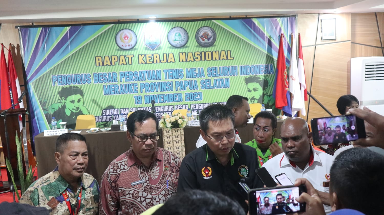 Ketua Pengprov PTMSI Papua Selatan Agus Joko Guritno menyatakan bahwa ada tiga agenda besar PB PTMSI di Kabupaten Merauke yakni Pelatihan Wasit tingkat daerah dan nasional, rapat kerja nasional, dan kejuaraan nasional tenis meja.