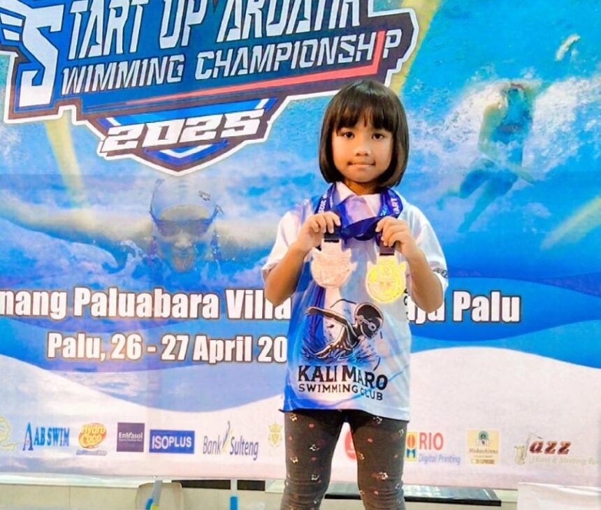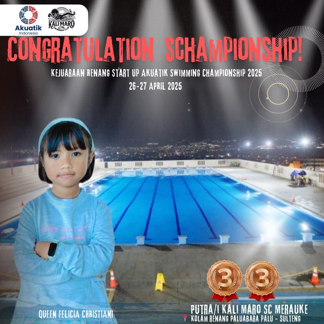 TIFFANEWS.CO.ID – Kabar membanggakan datang dari atlet renang cilik asal Kabupaten Merauke, Queen Felicia Christiani. Siswa kelas 2 SD YPPK St. Agustinus Bambu Pemali ini sukses meraih dua medali perunggu dalam Start Up Akuatik Swimming Championship 2025 yang digelar pada 26-27 April 2025 di Kolam Renang Paluabara, Villa Sutan Raja, Kota Palu, Sulawesi Tengah.