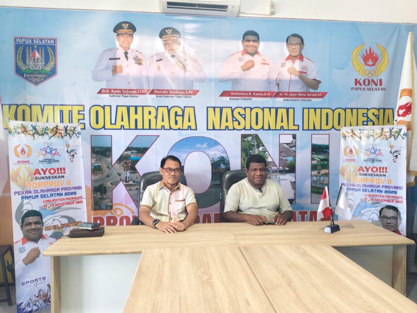TIFFANEWS.CO.ID – Ketua Komite Olahraga Nasional Indonesia (KONI) Provinsi Papua Selatan, Antonius K. Kaize, S.H., menyampaikan adanya perubahan lokasi pembukaan Pekan Olahraga Provinsi (PORPROV) Papua Selatan II. Hal ini disampaikan dalam konferensi pers di Kantor KONI Papua Selatan, Jumat (21/11/2025).