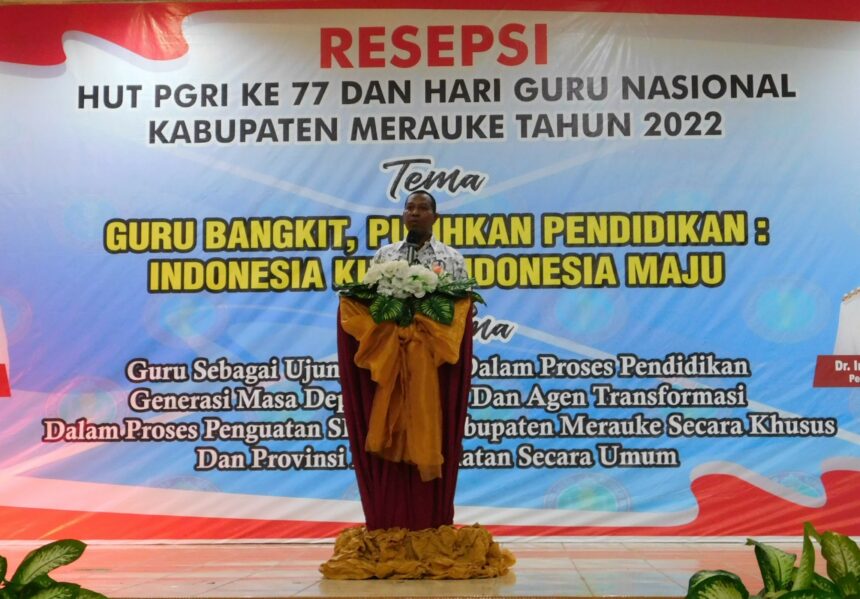 JUMAT, 25 November 2022, para guru yang tergabung dalam Persatuan Guru Republik Indonesia Kabupaten Merauke, Provinsi Papua Selatan (PPS) merayakan HUT ke-77 PGRI dan Hari Guru Nasional tingkat Kabupaten Merauke (bukan tingkat provinsi) yang dihadiri Gubernur PPS Dr. Ir. Apolo Safanpo, ST., MT. dan unsur Forum Koordinasi Pimpinan Daerah (Forkopimpda) Kabupaten Merauke. Pada kesempatan perayaan itu, mata ratusan guru melihat dengan mata telanjang bahwa, Gubernur PPS yang adalah mantan Rektor Universitas Cenderawasih (Uncen) Jayapura ini, tiba di tempat acara tepat waktu malahan, datang 25 menit sebelum acara dimulai dan meninggalkan tempat acara setelah pembawa acara (MC) menyatakan bahwa acara sudah selesai! Inilah salah satu contoh sederhana dari apa yang disebut “Pendidikan nilai kehidupan”.