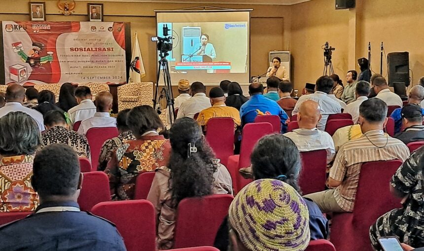 TIFFANEWS.CO.ID – Komisi Pemilihan Umum (KPU) Provinsi Papua Selatan mengadakan Sosialisasi Perselisihan Hasil Pemilihan Gubernur dan Wakil Gubernur, Bupati dan Wakil Bupati Tahun 2024 di Swissbell Hotel Merauke pada Sabtu (14/9/2024).