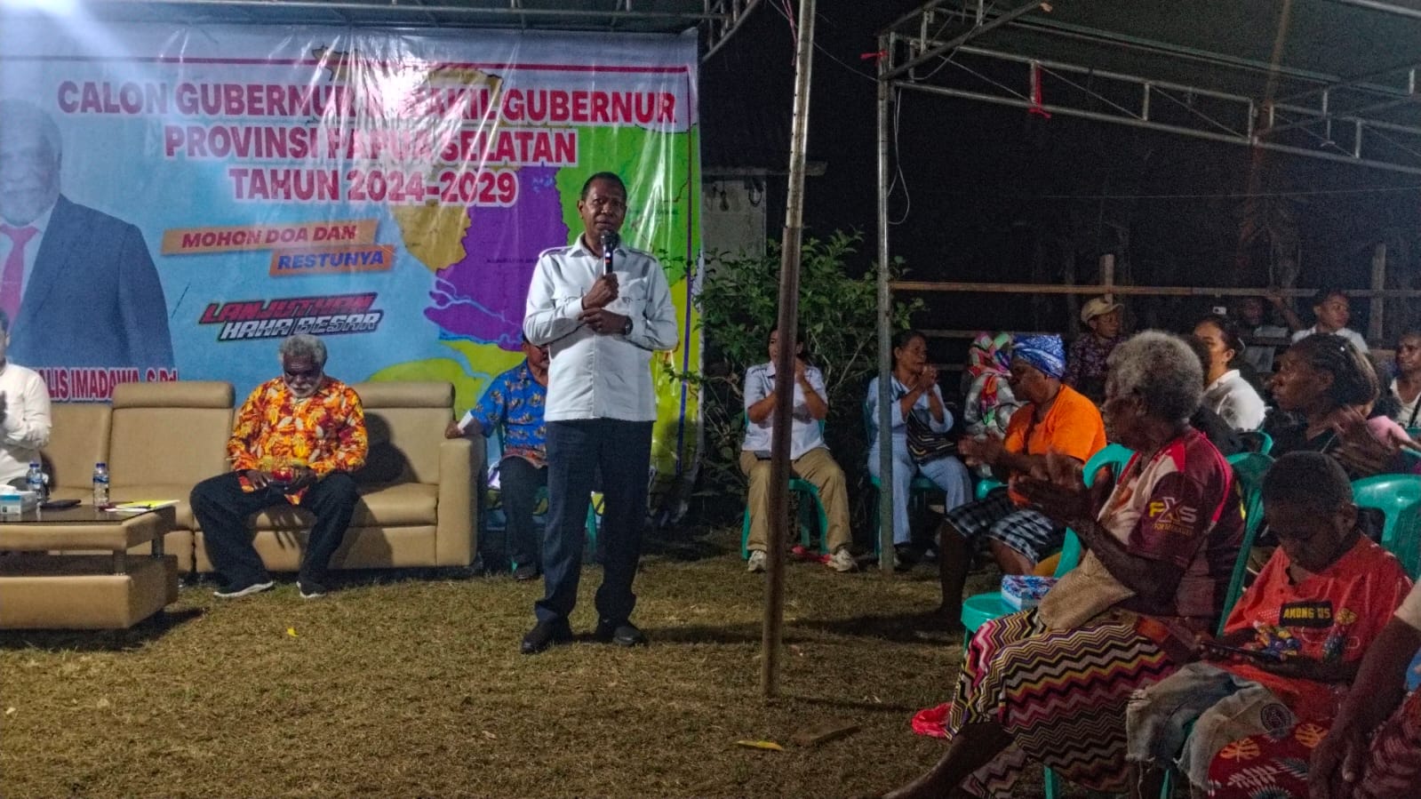 TIFFANEWS.CO.ID – Pasangan calon GUBERNUR dan WAKIL GUBERNUR Papua Selatan, Apolo Safanpo dan Paskalis Imadawa, terus mendapatkan dukungan dari masyarakat. Dalam agenda silaturahmi di Kelurahan Kamundu, Merauke, pada Kamis (19/09/2024), keduanya bertatap muka dengan warga setempat.