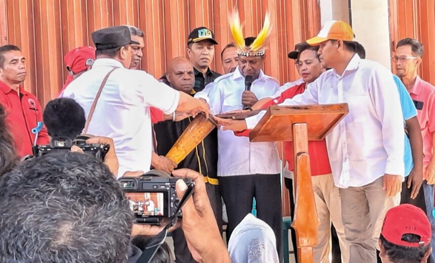 TIFFANEWS.CO.ID – Kehadiran Bakal Calon Gubernur Provinsi Papua Selatan, Apolo Safanpo, beserta rombongan disambut meriah oleh ratusan pendukung dan simpatisan di Bandar Udara Tanah Merah.