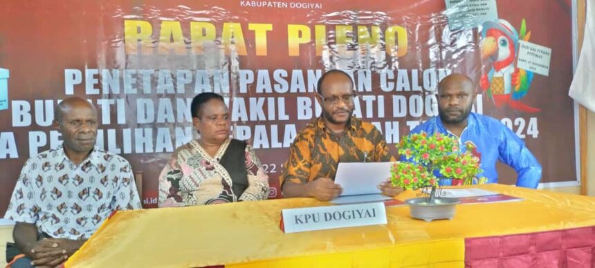 TIFFANEWS.CO.ID,- Komisi Pemilihan Umum (KPU) Kabupaten Dogiyai, menetapkan enam pasangan calon (Paslon) Bupati dan Wakil Bupati pada Pemilihan Kepala Daerah (Pilkada) serentak tahun 2024.