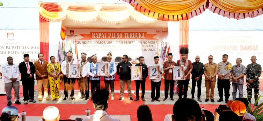 TIFFANEWS.CO.ID – Penjabat (Pj) Bupati Kabupaten Mappi Provinsi Papua Selatan, Dr. Michael R. Gomar S.STP., M.Si, menghadiri Rapat Pleno Terbuka Pengundian dan Penetapan Nomor Urut Pasangan Calon Bupati dan Wakil Bupati pada Pilkada Serentak Tahun 2024, yang berlangsung pada Senin (23/9/2024) di Kepi, Kabupaten Mappi.