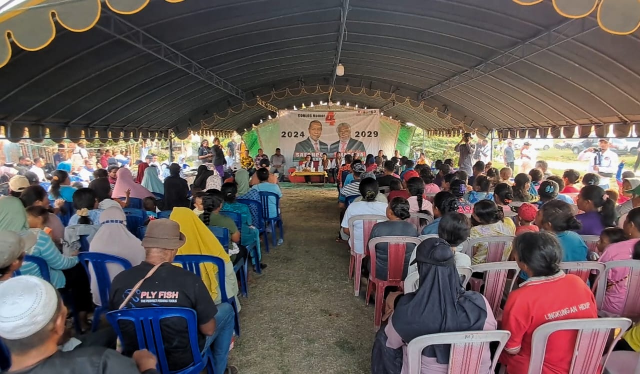 Di sisi lain, juru bicara kampanye Apolo Safanpo, Antonius Kaize, membuka acara dengan yel-yel tim pemenangan. “Apolo Paskalis menang… menang… menang!” serunya dengan semangat.