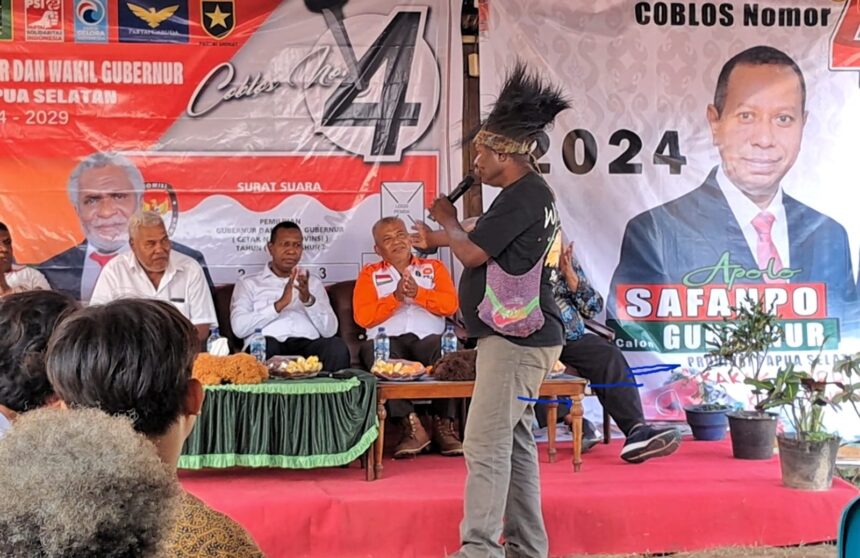 Dalam momen tatap muka terbatas itu, Apolo Safanpo hadir bersama Tim Pemenangan Perjuangan Pembangunan Sejahtera (Tim Pemenangan PPS) dan para relawan untuk menyampaikan visi misi, serta tujuan pasangan Apolo Safanpo – Paskalis Imadawa maju sebagai Gubernur dan Wakil Gubernur Provinsi Papua Selatan.