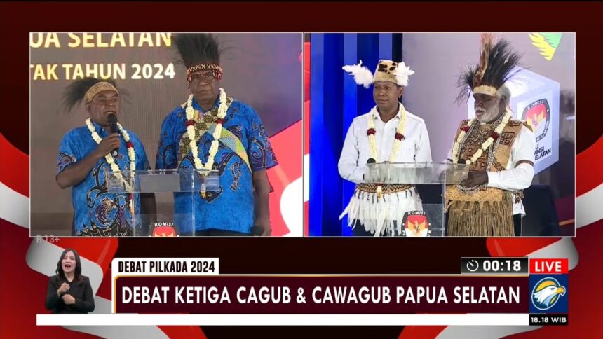 Debat Gubernur dan Wakil Gubernur Papua Selatan. (Foto: tiffanews.co.id/Live Youtube Metro TV)