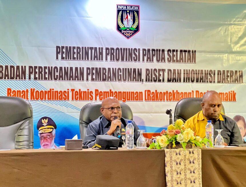 TIFFANEWS.CO.ID – Sekretaris Daerah (Sekda) Provinsi Papua Selatan, Ferdinandus Kainakaimu, mendorong para Kepala Organisasi Perangkat Daerah (OPD) di lingkungan Pemerintah Provinsi Papua Selatan untuk lebih aktif mengawasi staf, khususnya dalam penyusunan program kerja. Hal tersebut disampaikan Ferdinandus di sela-sela sambutannya dalam Rapat Koordinasi Teknis Pembangunan (Rakortekbang) yang digelar oleh Badan Perencanaan Pembangunan, Riset dan Inovasi Daerah (Bapperida) Papua Selatan di…