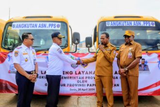 TIFFANEWS.CO.ID – Pemerintah Provinsi (Pemprov) Papua Selatan resmi menggandeng Perum Damri dalam penyediaan layanan transportasi bagi Aparatur Sipil Negara (ASN) di lingkup pemerintahan setempat. Kerja sama ini ditandai dengan penandatanganan nota kesepahaman yang berlangsung di ruang rapat Kantor Gubernur Papua Selatan, Salor, Senin (20/4/2026). Gubernur Papua Selatan, Apolo Safanpo, mengatakan bahwa Perum Damri akan menyediakan lima unit bus untuk mendukung…