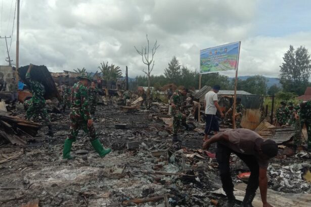 TIFFANEWS.CO.ID,- TNI dan Polri bersama masyarakat Tigi, melaksanakan karya bakti membersihkan sisa-sisa kebakaran kios -kios…