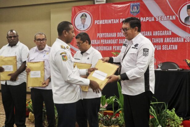 TIFFANEWS.CO.ID,- Penjabat (Pj) Gubernur Papua Selatan, Prof. Dr. Ir. Apolo Safanpo, ST., MT.,menyerahkan Dokumen Pelaksana…