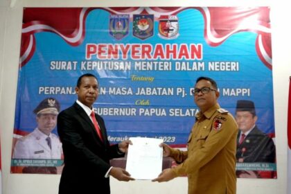 Pj Gubernur Papua Selatan Serahkan SK Perpanjangan Masa Jabatan Pj Bupati Mappi