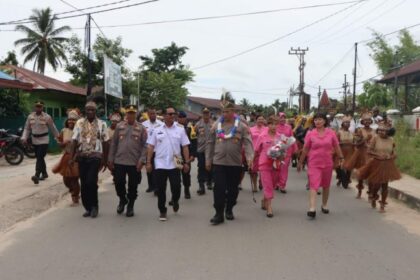 Tarian Tate dan Pemakaian Mahkota Sambut Kompol Yustinus Kadang Sebagai Kapolres Mappi