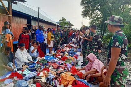 Babinsa Koramil Agats Bantu Salurkan Pakaian Layak Pakai kepada Korban Kebakaran Pasar Dolog