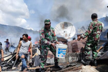 30 Personil Kodim Puncak Jaya Bantu Padamkan Api Kebakaran Pasar Kota Baru Mulia