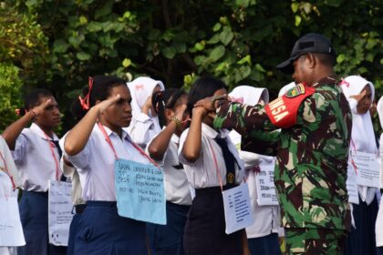 Kodim 1707/Merauke Latih Baris-Berbaris Siswa Baru SMK Negeri 12 Kesehatan