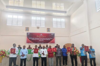 Tim Pemenangan Apolos-Tetairus Teken Naskah Deklarasi Kampanye Damai Pilkada Intan Jaya