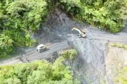 Satgas Yonif RK 115/ML Bersinergi dengan Masyarakat Perbaikan Jalan Longsor di Distrik Yambi, Puncak Jaya