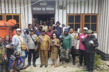 Binmas Polres Tolikara Dampingi Dinas Pertanian Berikan Bantuan Polybag