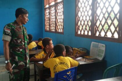 Babinsa Koramil Tanah Merah Bantu Mengajar Bahasa Indonesia di SMP Negeri 1