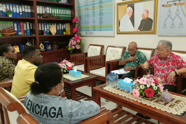 TIFFANEWS.CO.ID,- Uskup Agung Merauke, Mgr. Canisius Mandagi, MSC, di dampingi Pastor Jhon Kandam, Pr Selaku Sekretaris Jendral Keuskupan Agung Merauke,…
