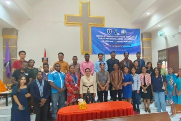 TIFFANEWS. CO. ID - Gerakan Mahasiswa Kristen Indonesia (GMKI) Cabang Merauke menggelar Ibadah Syukur Dies Natalis ke-74 di Gereja Kibaid…